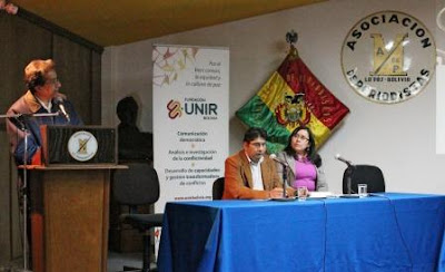 Cecilia Banegas, corresponsal del Observatorio Nacional de Medios (ONADEM) de la Fundación Unir Bolivia, presentó en Santa Cruz, Cochabamba y recientemente en La Paz un estado del arte sobre el periodismo digital en Bolivia. El estudio, en el que también participaron Jessica Olivares, Jessica Terceros y Dagner Hidalgo, hizo un seguimiento a las versiones en línea de 70 medios en todo el país, entre medios nativos en Internet y medios en transición (agencias de noticias, radio y prensa). Ahí, en la Asociación de Periodistas de La Paz (APLP), estuvimos con la autora y el comunicólogo Erick Torrico para hacer los comentarios al texto.