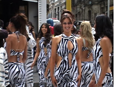 El 7 de abril, con sugestivos trajes en blanco y negro, las candidatas a Miss La Paz estuvieron ayudando a las “cebras” a enseñar la educación vial en la sede de gobierno, esta foto rememora este singular acontecimiento.